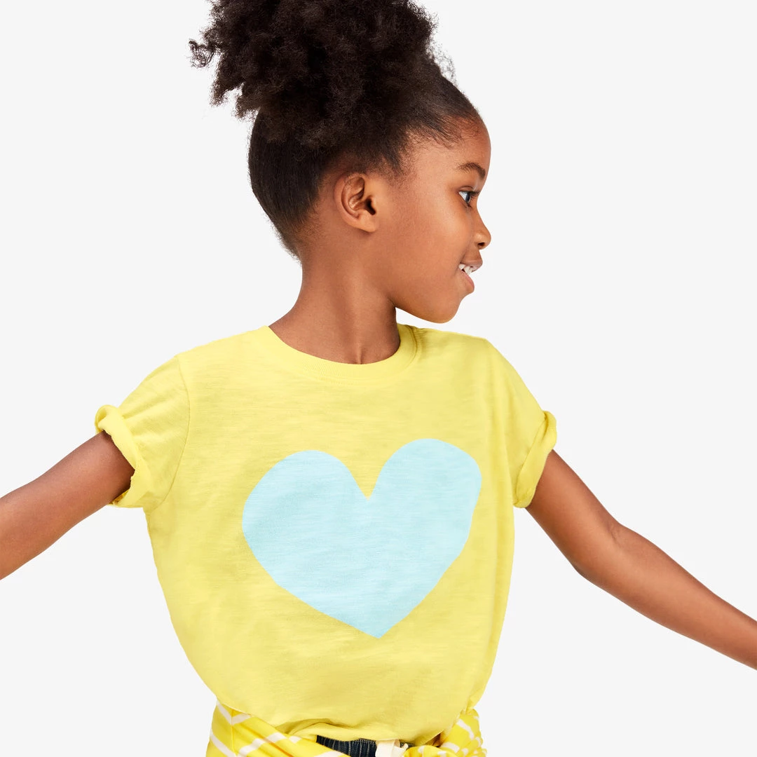 We made this for the kid who wants to wear a graphic tee, but doesn’t really feel like a “Little Heartbreaker.” Features our imperfect heart, hand-cut by our Design Director.