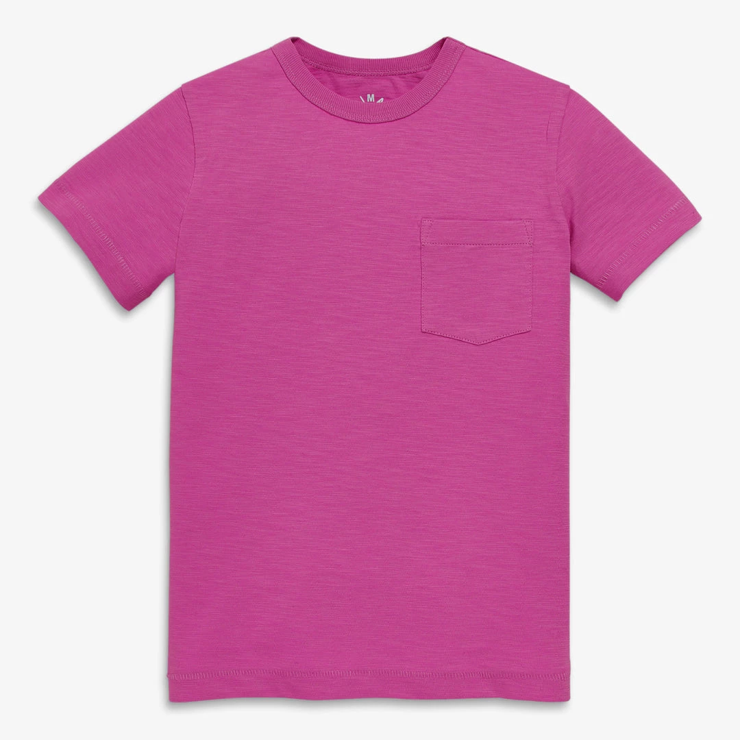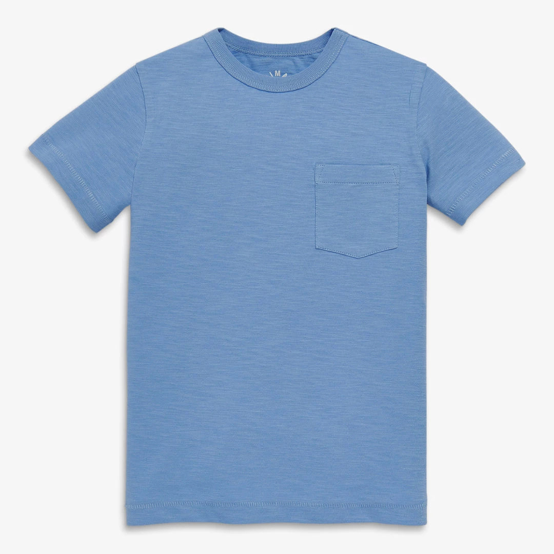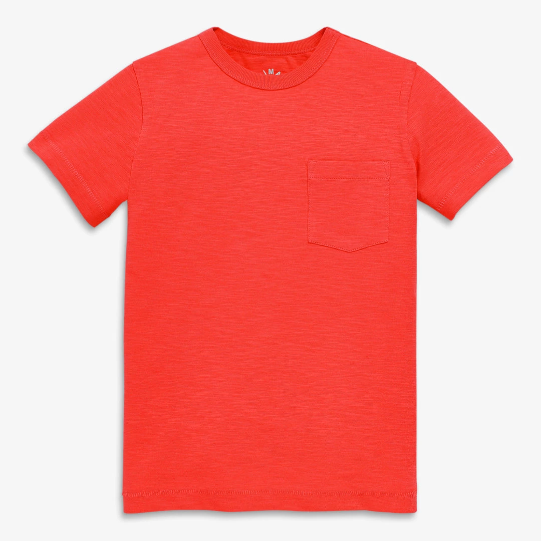 Made from our slightly textured cotton slub fabric, this tee is a soft, light and easy-to-match option to throw on and get the day started. Sure to be in heavy rotation- it washes just as well as it wears, retaining its shape and color through all the spring and summer action.The front pocket provides ample room to store important items they collect on daily adventures.